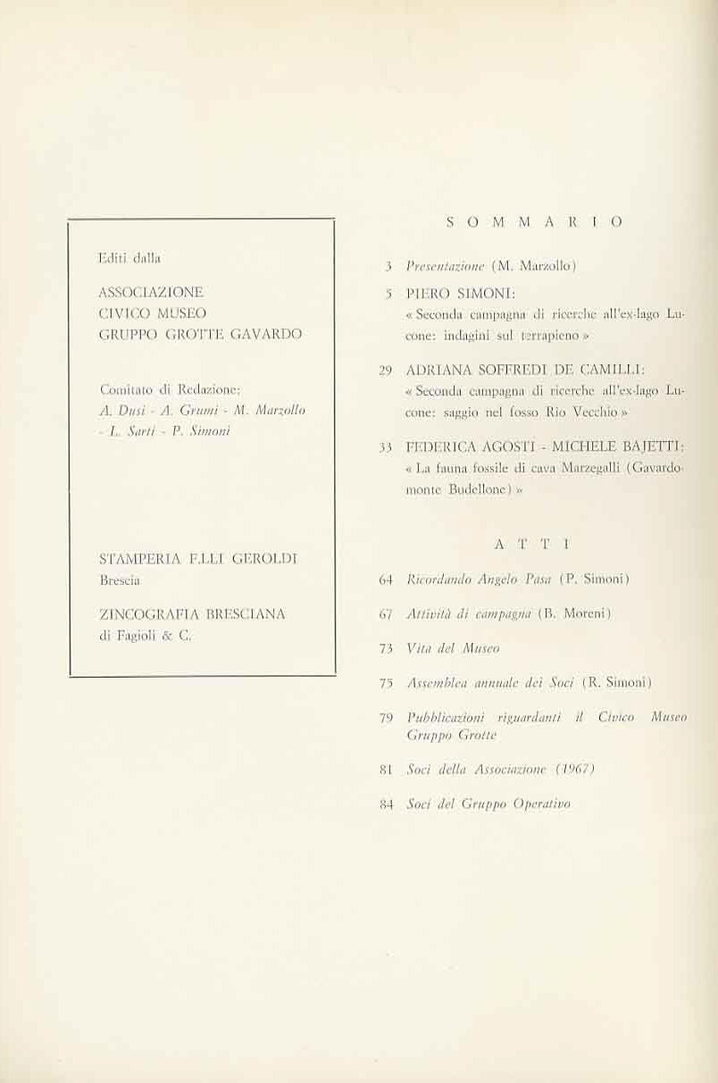 | Annali del Museo | Civico Museo Gruppo Grotte di Gavardo, BS | 2/1963-sommario,3-sommario,4-sommario,5,-sommario, 6/1967-sommario,9/1971-sommario,10sommario,11/1973-74-sommario |