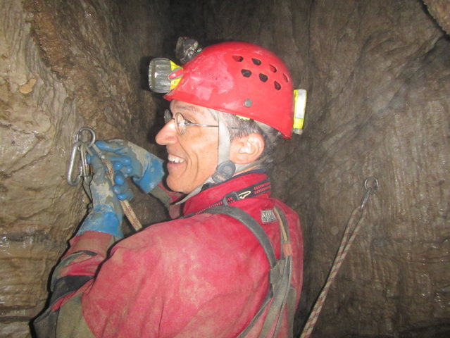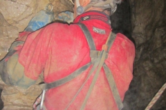 Dopo vari problemi dovuti ad una corda che non abbiamo portato, oltre che al mio pettorale, scendiamo fino alla sala della cascata….tanta acqua, risaliamo e togliamo definitivamente i moschettoni in alluminio.